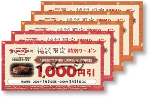 ブロンコビリーは、2026年1月2日(金)より「ブロンコビリー福袋」を税込5,000円で販売します。5,000円分の特別クーポンとオリジナルグッズ5点セットが含まれるほか、合計2,850名様に豪華プレゼントが当たるチャンスも。開催内容や参加方法を詳しく紹介しますのでぜひ参考にしてください。