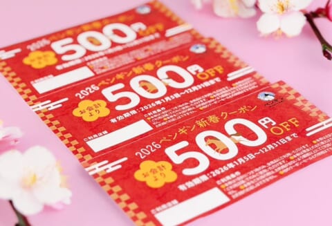 福袋には、1回のお会計から500円割引になるクーポン券が3枚綴り、合計1,500円分付属します。これらのクーポン券は2026年12月31日までゆっくりと利用可能です。