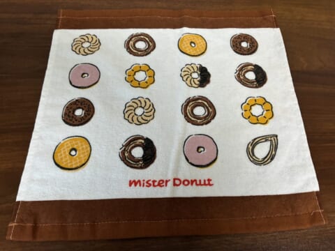さまざまなドーナツが散りばめられ、ミスタードーナツの世界観が表現されています。素朴なタッチのイラストが素敵な一品です。