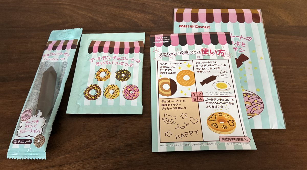 中身はシンプルな構成で、チョコレートペン1本、ゴールデンチョコレートのきいろいつぶつぶ1袋、そして使い方カードが含まれます。