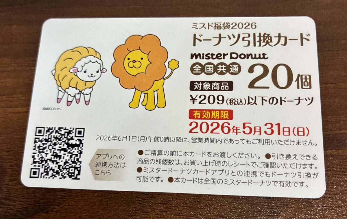 ドーナツ引換カードの有効期限は、2026年5月31日(日)までです。期限切れに注意してください。