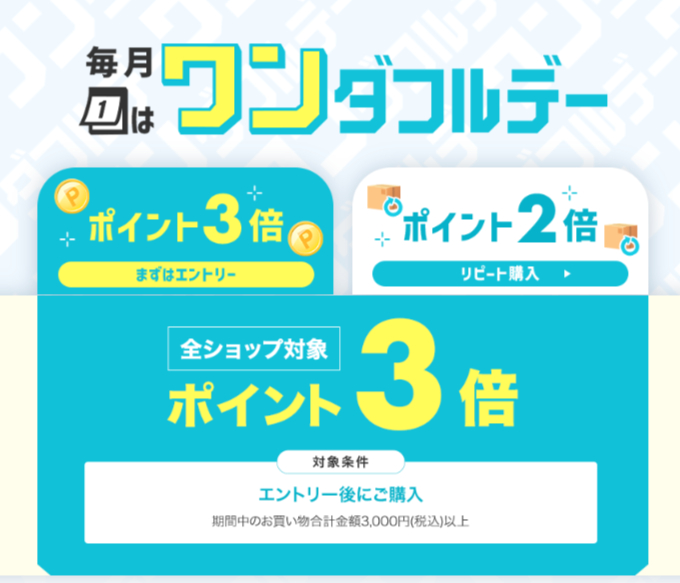 合計3000円(税込み)以上の購入で特典ポイントが最大4倍。