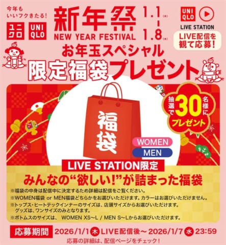 UNIQLO LIVE STATION限定!福袋プレゼントキャンペーン