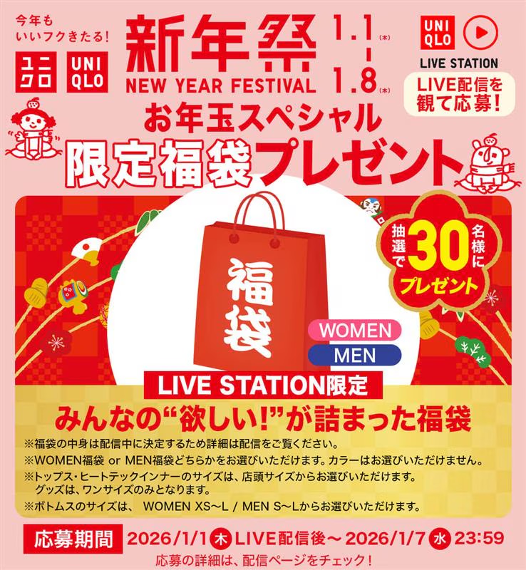 UNIQLO LIVE STATIONでは、限定の福袋プレゼントキャンペーンを実施します。