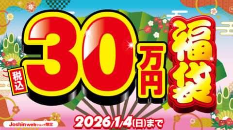 店頭は2026年1月2日(金)から1月12日(月・祝)まで新春初売りが開催されます。Joshin webショップのwebクーポン企画は1月5日(月)1:59まで実施中です。
