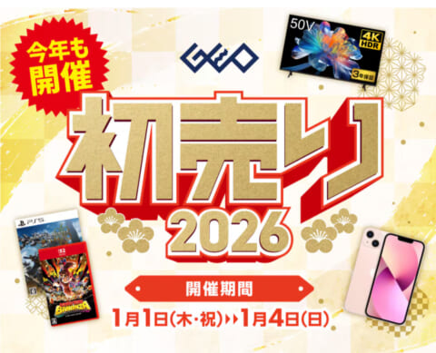 2026年1月1日より「ゲオの初売り 2026」が全国のゲオとオンラインで開催。中古スマホ10%OFF、ゲーム3本半額など、お得なセール情報を解説します。