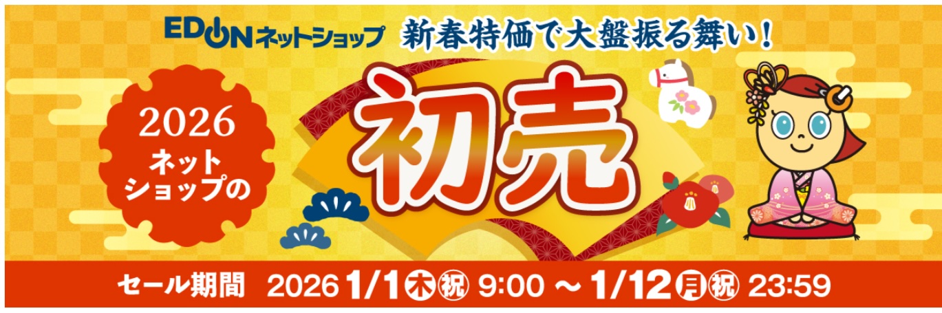 エディオンネットショップは、2026年の初売りセール「EDIONネットショップ 新春特価で大盤振る舞い!2026 ネットショップの 初売」を開催します。以下にセール概要をまとめました。