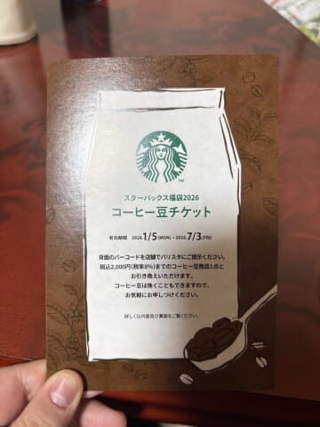 - 税込2,000円までのコーヒー豆商品1点と引き換え可能(STARBUCKS RESERVE®など一部対象外あり)