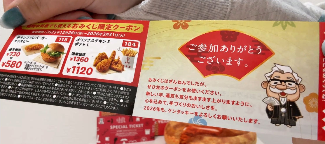 お楽しみ要素「ケンタおみくじ2026」のクーポン内容