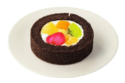 - 内容:5種類のフルーツ(イチゴ、パイナップル、黄桃、キウイ、りんご)を使用した、見た目も鮮やかなロールケーキです。