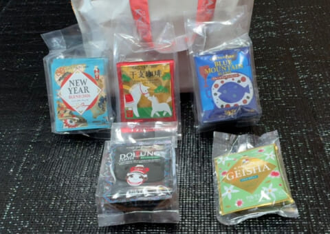 公式オンラインストアで単品価格が確認できた「ニューイヤーブレンド2026」「干支珈琲 ケニア ニエリ地区 ダークロースト」「ブルーマウンテンブレンド」の3種類(合計18杯分)だけでも、合計3,840円分ありました。