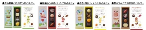 イオン限定「しののめ果実園」は、動物たちと過ごす穏やかな春の果実園をイメージしています。実りのパルフェを果実を使った4つのパルフェに仕立て、折り重なる各層の味わいを4つのチョコレートで表現しました。価格帯は本体450円(税込486円)から本体1,500円(税込1,620円)で、9品目を用意します。