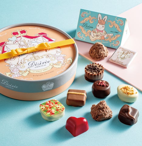 1903年創業の伝統を受け継ぎつつ、熟練ショコラティエの技と発想で進化し続けるベルギーチョコレートブランド〈デジレー〉。今年は、伝統の「トリュフ」や日本オリジナル「レッドハート」、新作「フラワーフル」など8種のフレーバーを、オレンジカラーの限定パッケージで展開します。店頭で購入した方にはミニチョコBOXの特典も用意されています。