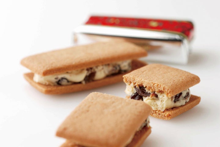 北海道のロングセラー商品、〈六花亭〉のマルセイバターサンドも登場します。ホワイトチョコレートと北海道産生乳100%のバター、カリフォルニア産のレーズンを合わせたクリームをビスケットでサンド。レトロなパッケージも人気です。