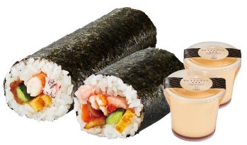 - (特選恵方巻・豪華海鮮恵方巻(ハーフ)・プレミアムプリン(2個))