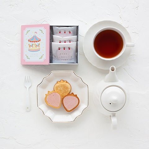 いちご型のサクッとしたタルトに、あまおういちごチョコとホワイトチョコの2層クリームを入れ焼き上げた「風美庵 苺のワルツ チョコタルト3個入」は、可愛らしい見た目と美味しさが魅力です。