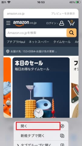 これらのブラウザでも、Amazon公式サイトへのリンクを長押しして新しいタブで開くことで、ウェブ版Amazonにアクセスできます。
