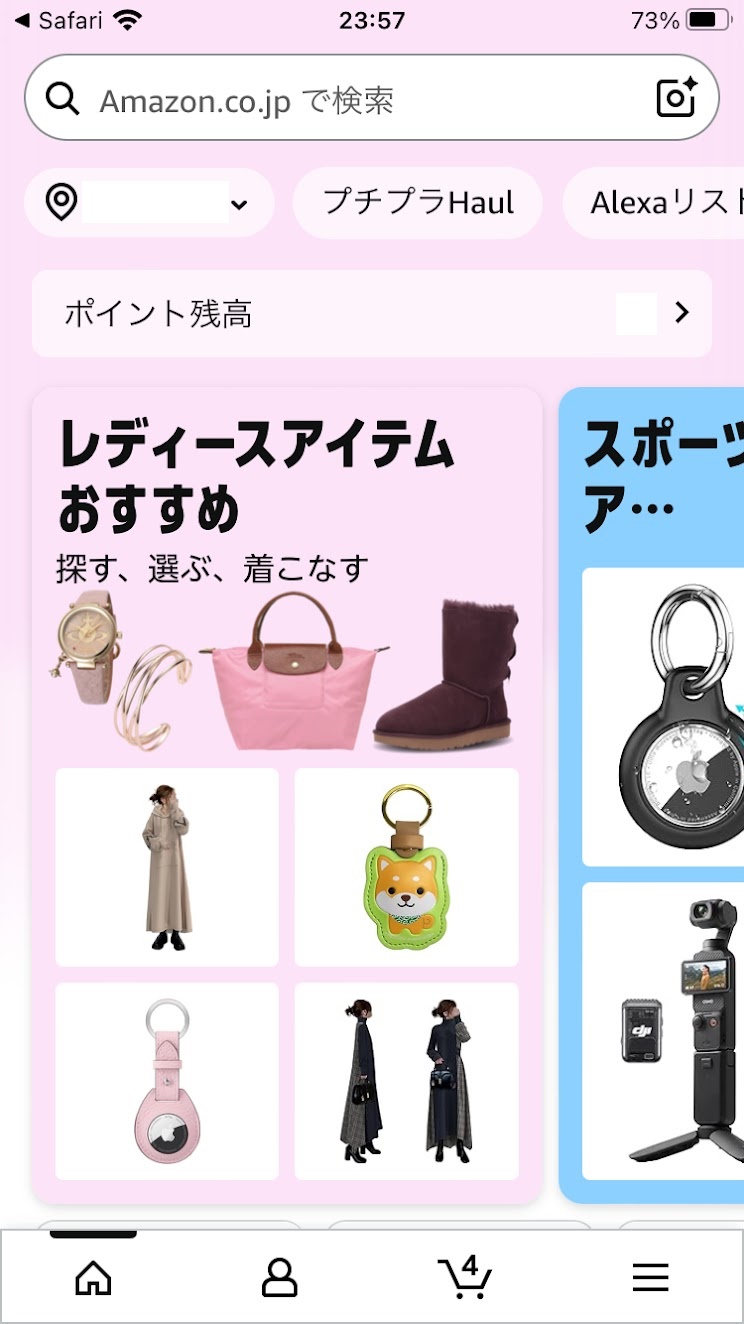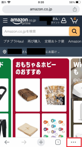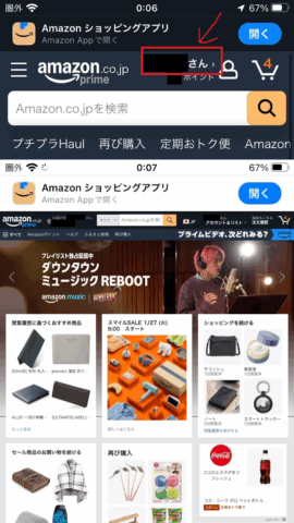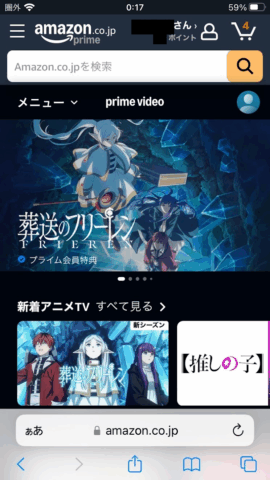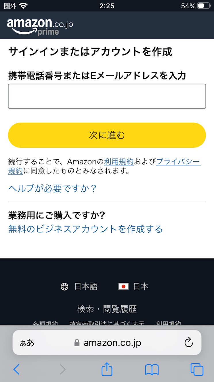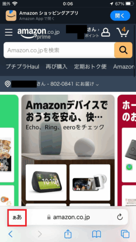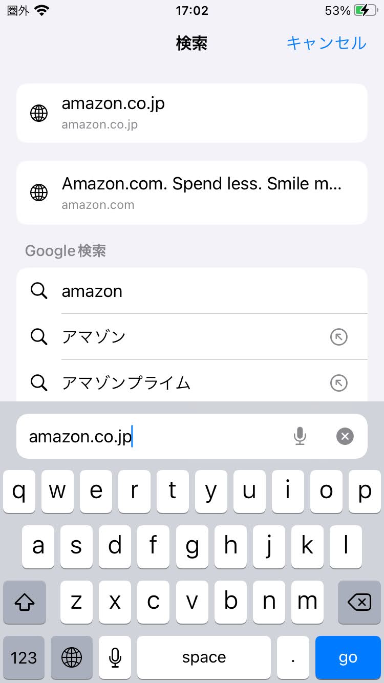 SafariやChromeのアドレスバーに「Amazon.co.jp」と正確に入力して、ウェブ版のAmazonに移動します。