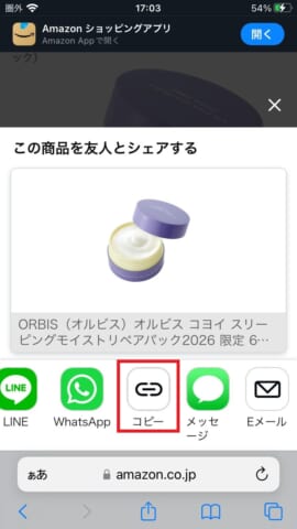 - コピーを選択し、商品ページのURLをブラウザに貼り付ける。