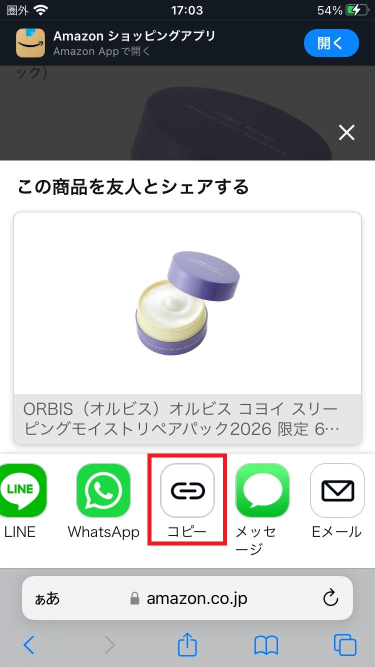 検索結果に表示されたAmazon公式サイトへのリンク(または上記のボタン)を長押しします。