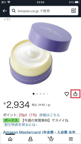 ▼商品の右側に表示された共有ボタン(iPhoneなら四角に上向き矢印のアイコン)