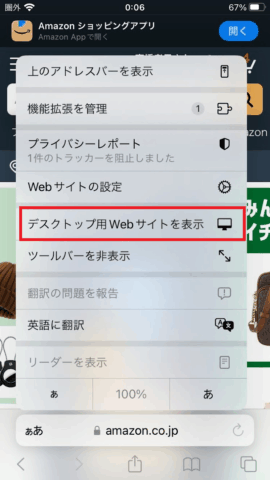 - 「デスクトップ用Webサイトを表示」をタップするとPC版サイトに切り替わる