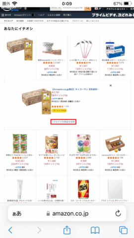 - 「あなたにイチオシ」画面で削除したいおすすめ商品を選択