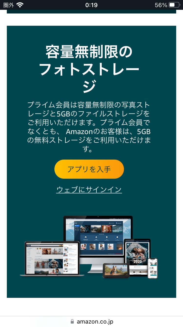 うまく登録できないときは、まずブラウザでウェブ版Amazonにアクセスして手続きを進めてみましょう。