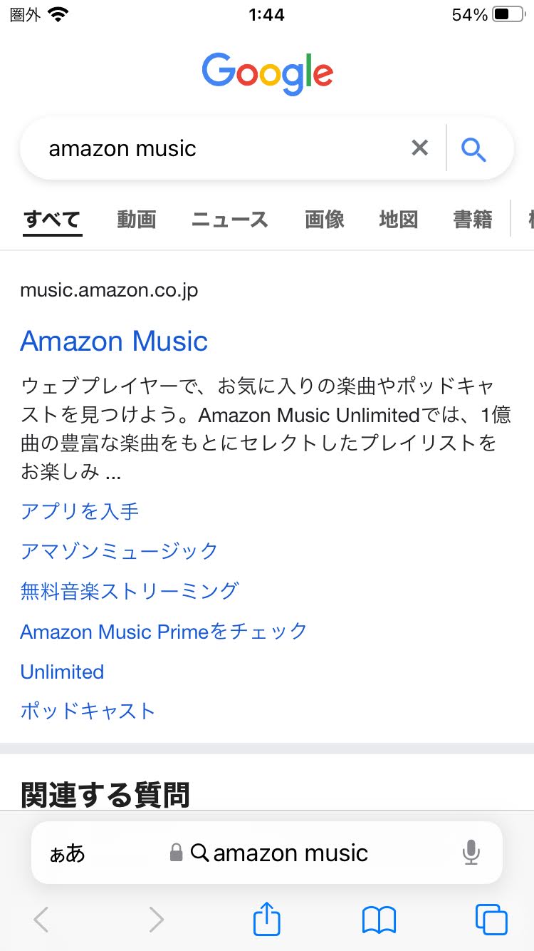 SafariやChromeなどのブラウザを開いて、GoogleやYahoo!などで「Amazon」と検索します。