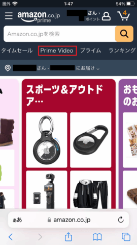 ▼Amazon公式サイトで「Prime Video」タブを選択
