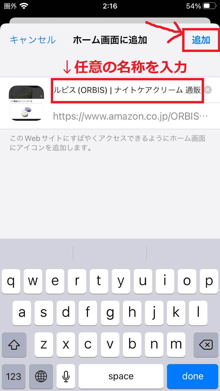 ▼最後に任意の名称を入力(変更がなければそのままでOK)、「追加」をタップ
