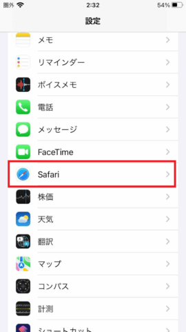 ▼長押し後に出たメニューを下にスクロールし、「Safari」をタップします。