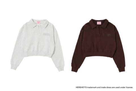 今回のコラボレーションでは、HERSHEY’Sが持つ「甘さ」と「ノスタルジー」という要素を、MOUSSYが繊細なディティールで再構築しました。ハートのモチーフ、刺繡、ラインストーンなどをデザインに取り入れ、ブラウンやピンクといったカラーパレットでバレンタインのムードを表現しています。日常に溶け込むデザインでありながら、特別な日にも気分を高めるアイテム群を展開します。