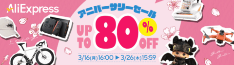 AliExpress(アリエクスプレス)では現在、期間限定のセールが開催されています。