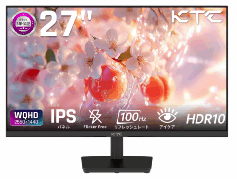 2560×1440のWQHD解像度に対応した27インチモニターです。