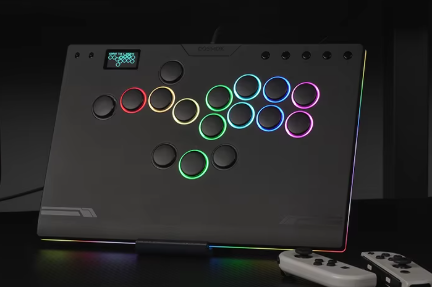 格闘ゲーム向けに設計されたレバーレス(Hitboxタイプ)アーケードコントローラーで、レバーを使わずボタン入力のみで操作するため、素早く正確なコマンド入力が可能です。