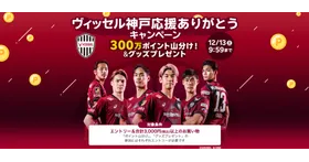 楽天ヴィッセル神戸応援キャンペーン開催:300万ポイント山分けと豪華グッズ抽選会 12月13日 9:59まで