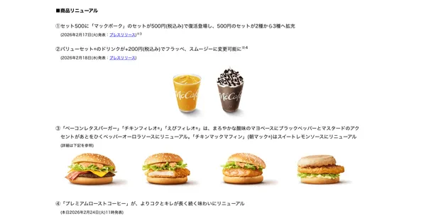 【マクドナルド】値上げ商品一覧 | 2026年2月25日価格改定まとめ