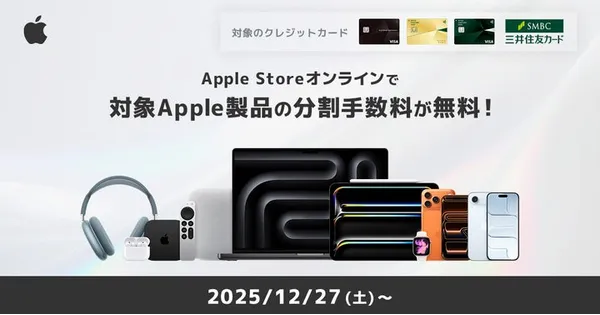 2025年12月29日 12:12三井住友カードは、Apple Storeオンラインでの対象カードによる分割払い(3回〜24... -