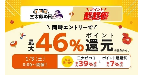 2025年12月30日 10:37au PAY マーケットは2026年1月、新春の三太郎の日とお買い物ラリーを開催。最大70%... -