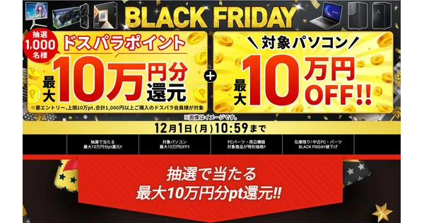 ドスパラ ブラックフライデー2025|最大10万円pt還元&PCがお得!