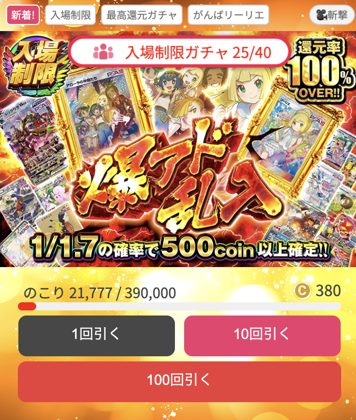 手に入れたポイントやコインは、それぞれ限定のガチャを引くために使うことができます。手に入れたポイントやコインは、それぞれ限定のガチャを引くために有効活用しましょう。