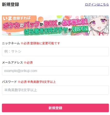 オリくじサイトの右上にある「新規登録」をタップしましょう。(アプリの場合はインストールしてからアプリを開く)