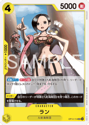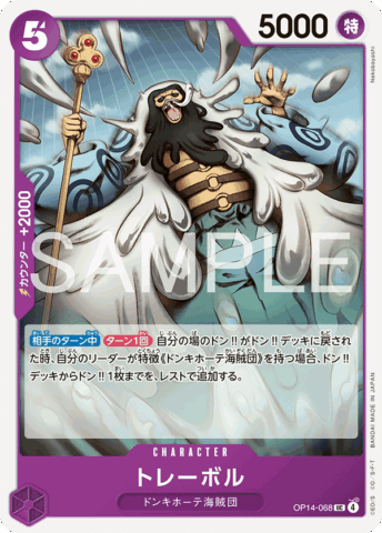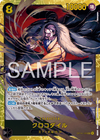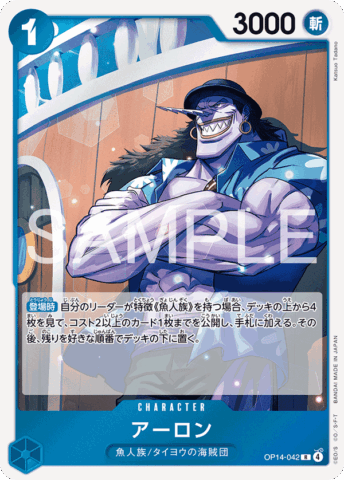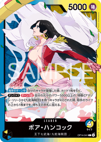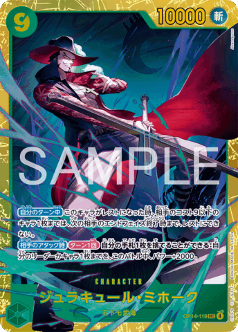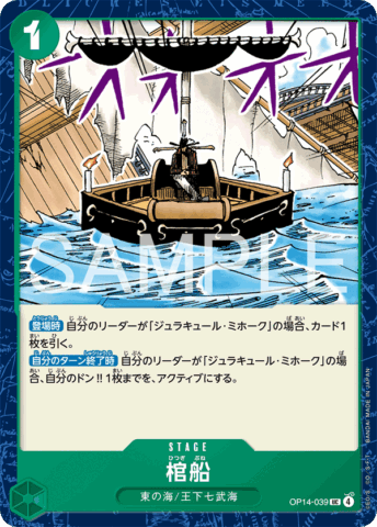 ブースターパック第14弾となる「蒼海の七傑」は、『王下七武海』をテーマにしたパックとなっており、王下七武海のリーダーや人気キャラクターが多数収録されます。
