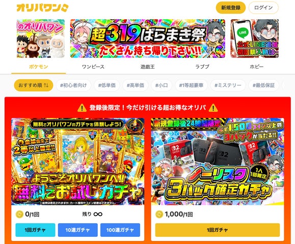 オンラインオリパサイト「オリパワン」では、2025年11月第3週にスペシャルウィークとして複数のイベントを展開しています。