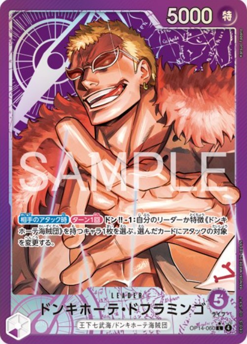 ブースターパック第14弾となる「蒼海の七傑」は、『王下七武海』をテーマにしたパックとなっており、王下七武海のリーダーや人気キャラクターが多数収録されています。