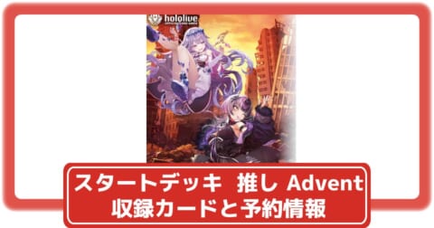 hololive OFFICIAL CARD GAME スタートデッキ 推し Adventの抽選・予約情報や収録カードをまとめています。ネット通販サイトの情報を主に掲載しているので、ぜひ参考にしてください。