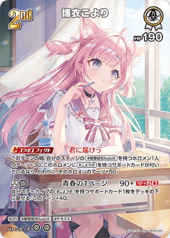 封入率は48BOXに約1~2枚とSECの次に希少性が高く、人気のホロメンは特に高額で取引されています。