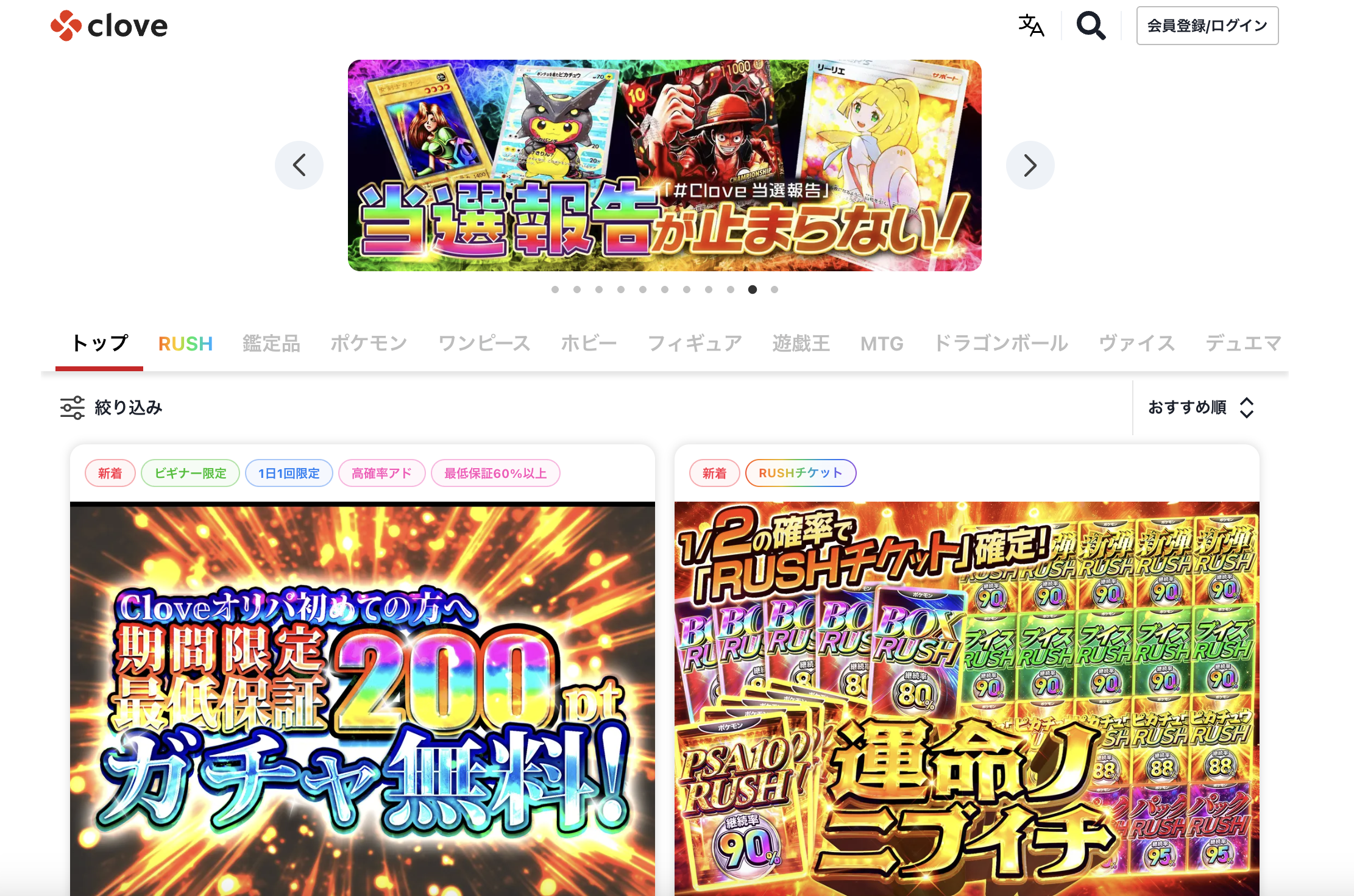 cloveオリパは、国内最大級の知名度を誇るオンラインオリパサイトです。その特徴と魅力をご紹介します。