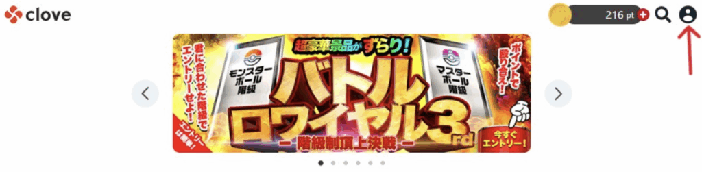 - cloveにログイン後、トップページ右上の人型アイコンを選択し、マイページを表示させます。